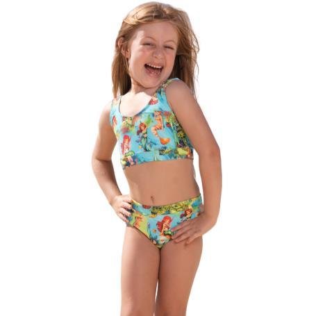 Conjunto de biquíni infantil composto por top e calcinha, confeccionado em tecido leve com toque macio e excelente elasticidade. O top possui alças fixas e acabamento reforçado, oferecendo ajuste seguro e confortável. A calcinha tem modelagem tradicional com forro interno, garantindo conforto e proteção. Ideal para praia ou piscina, com secagem rápida e cores vibrantes.