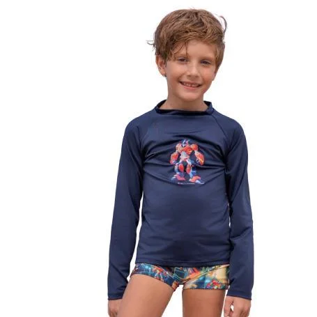 Conjunto infantil composto por blusa com proteção solar UV e sunga boxer. Produzido em malha de alta elasticidade e secagem rápida, proporciona ajuste confortável, resistência e segurança durante o uso. Ideal para piscina, praia e esportes aquáticos, disponível em diversas cores e estampas exclusivas.